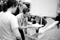 Die Herausforderung war gewaltig. Martin musste ein Brett zerschlagen, und das mit einem rohen Ei in der Hand (das Ei durfte natürlich nicht kaputt gehen). Die Wettkandidatin Janna Vernunft (ja so heisst sie) scheiterte an dieser Aufgabe bei Thomas Gottschalk. Nicht so unser Martin (leider war er nicht bei Gottschalk)!